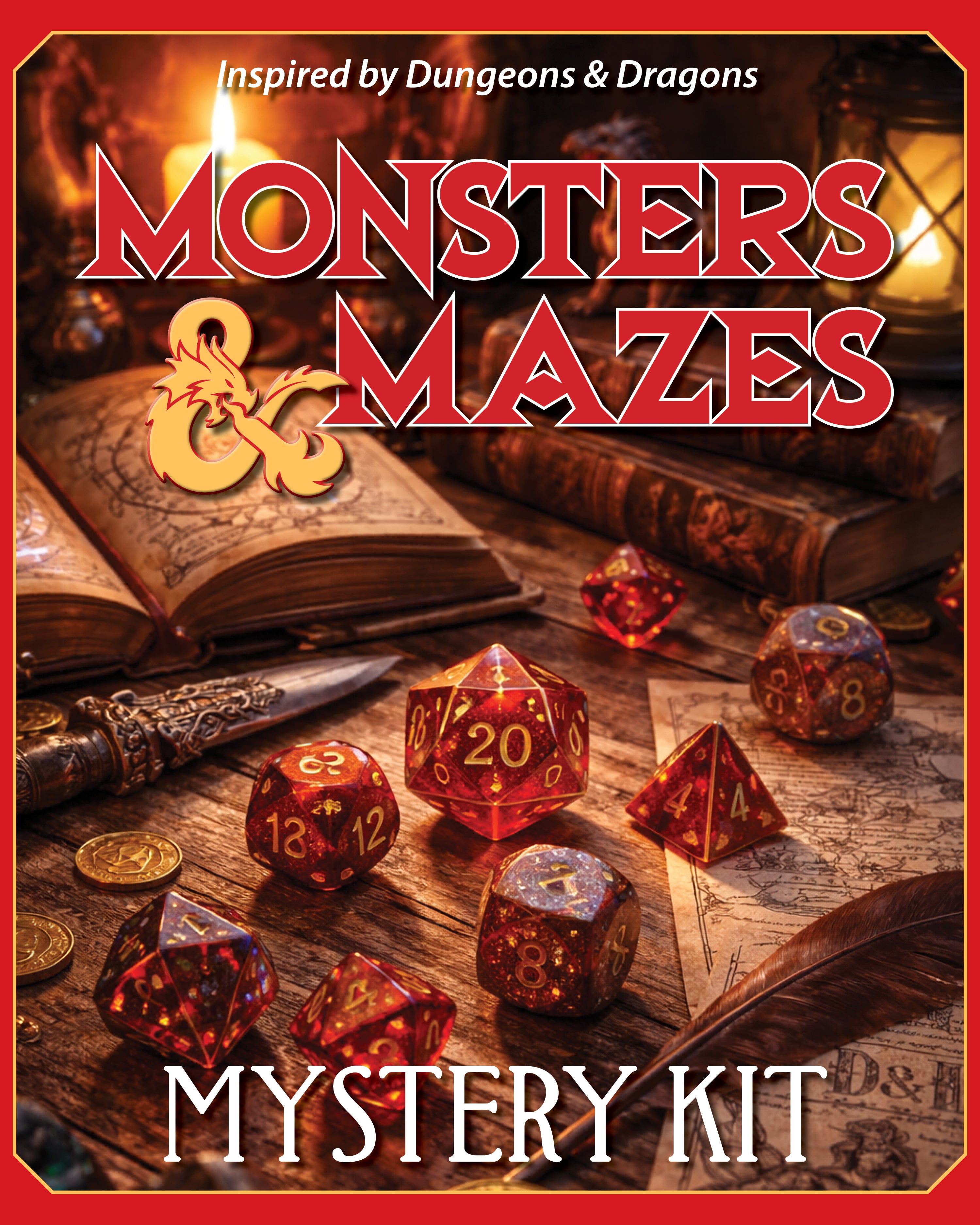 Our new D&D-inspired cross stitch kit! Each kit features an exclusive pattern designed by Kelley, the fabric and floss needed to stitch it, a custom needleminder, and your choice of project bag.