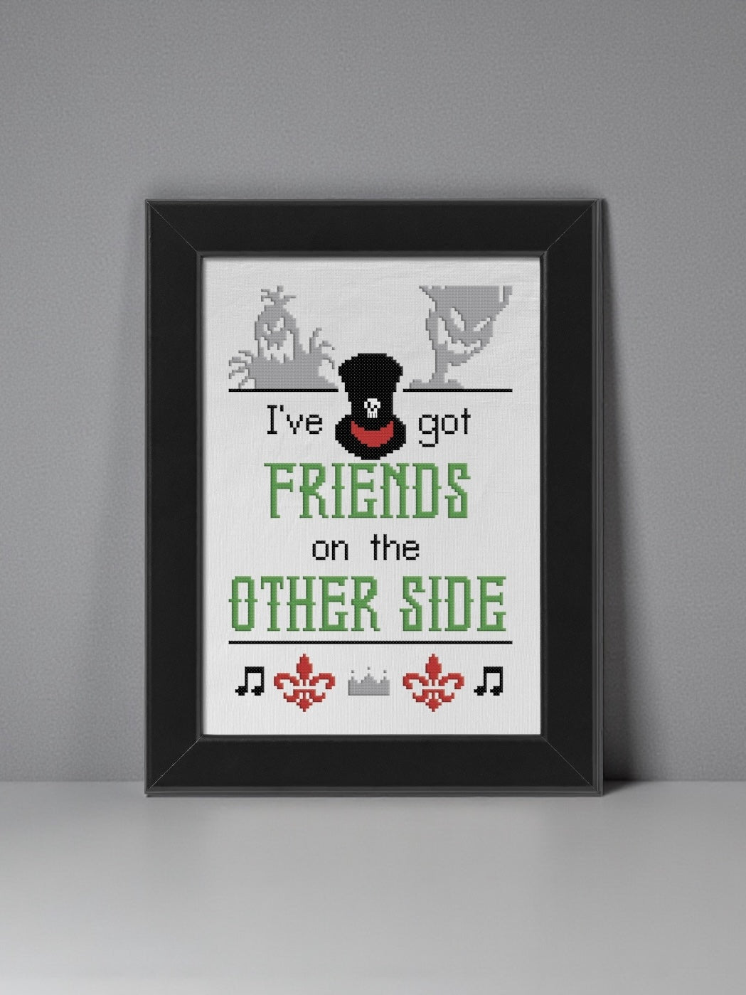 A cross stitch pattern inspired by Dr Facilier.